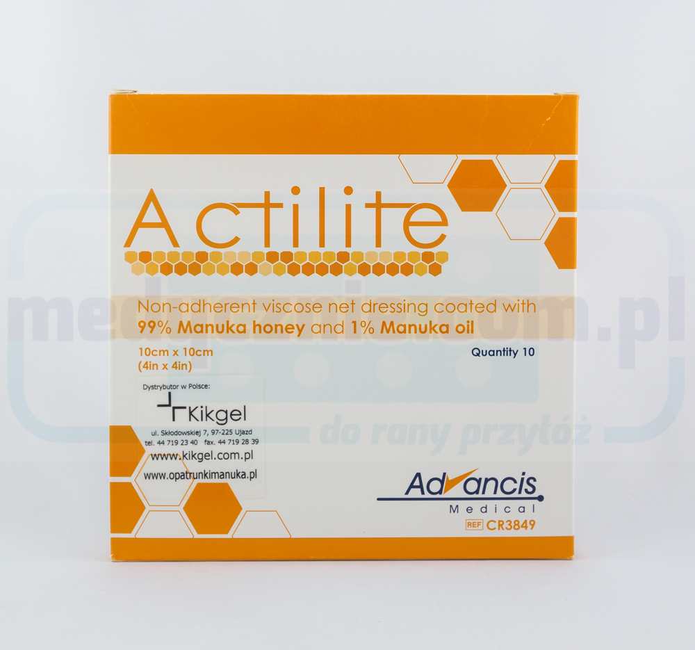 Actilite jest opatrunkiem, który nie przywiera do rany. Wszystko dzięki specjalnej siateczce , która ostała pokryta specjalną, antybakteryjną powłoką z miodu Manuka Activon+ (99%), a także specjalnemu olejkowi Manuka (1%). Actilite przeznaczony jest przede wszystkim do ochrony rany, jednak skutecznie przyśpiesza także gojenie się rany, dodatkowo dzięki siateczce umożliwia przedostawanie się dużej ilości wysięku.