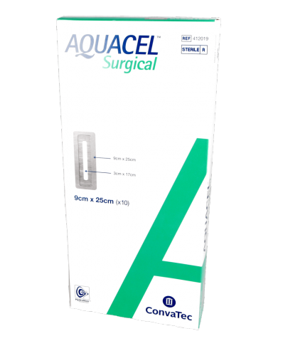 Nałożenie opatrunku Aquacel Surigical powinno być poprzedzone oczyszczeniem rany i osuszeniem wraz z powierzchnią skóry otaczającej. Ranę należy przepłukać sterylnym roztworem soli sodowej (0,9% NaCl). Opatrunek posiada warstwę z papieru zabezpieczającego. Należy ją delikatnie usunąć, przyłożyć do rany i delikatnie wyrównać dociskając warstwę przylepną do skóry. Opatrunek może być pozostawiony na skórze do siedmiu dni. Częstotliwość zmiany opatrunków powinna być dostosowana do intensywności wysięku i postępów w gojeniu.