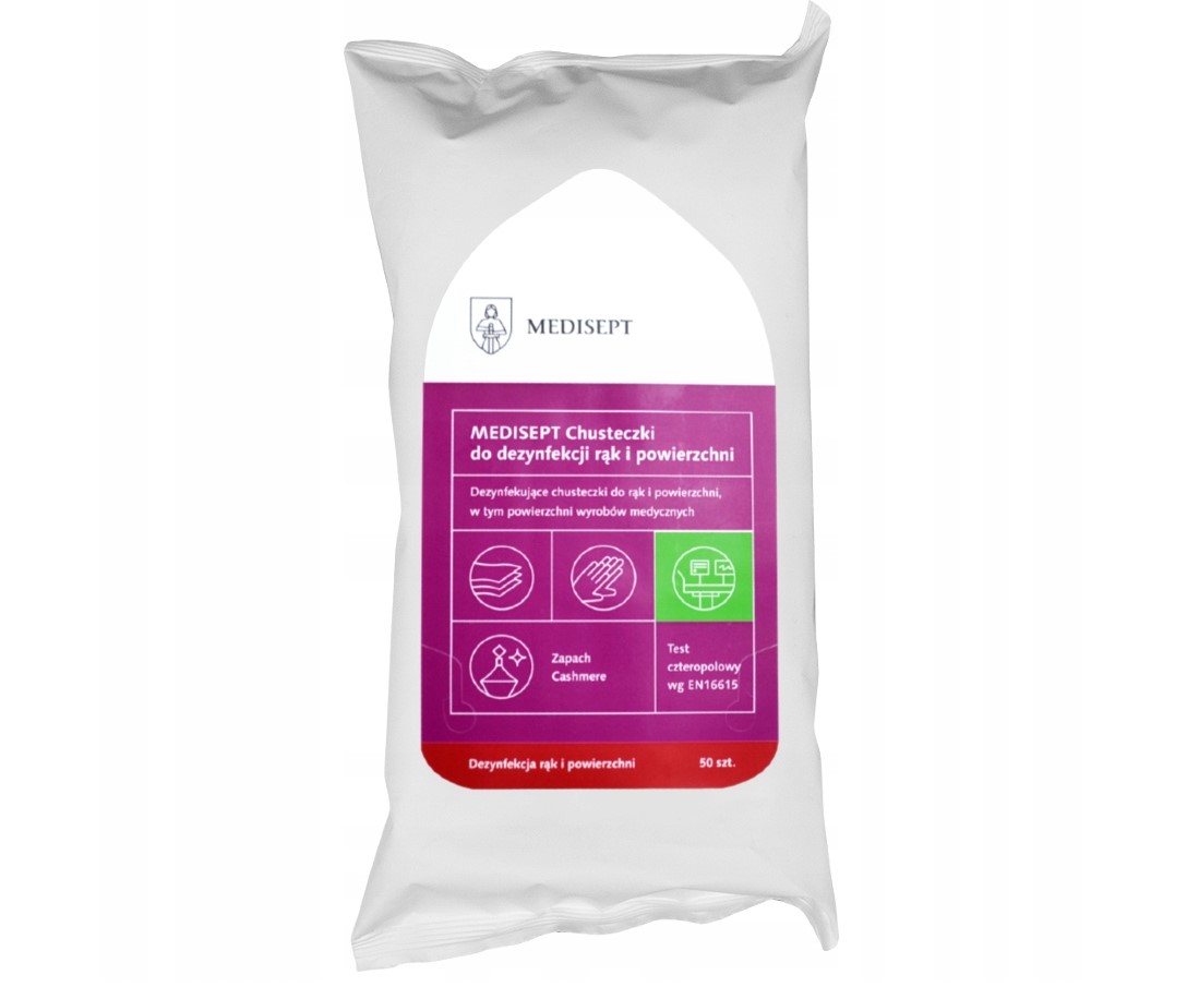 Nasączane alkoholem chusteczki do higienicznej dezynfekcji rąk i wszelkich małych powierzchni odpornych na działanie alkoholu.