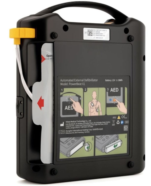 efibrylator AED Vivest PowerBeat X1 to półautomatyczny defibrylator, który zapewnia wizualne i dźwiękowe wskazówki dotyczące udzielania pierwszej pomocy z użyciem AED w czasie rzeczywistym. Defibrylator wspomaga ratowników w przeprowadzaniu efektywnej resuscytacji krążeniowo-oddechowej, zgodnie z wytycznymi AHA 2020.