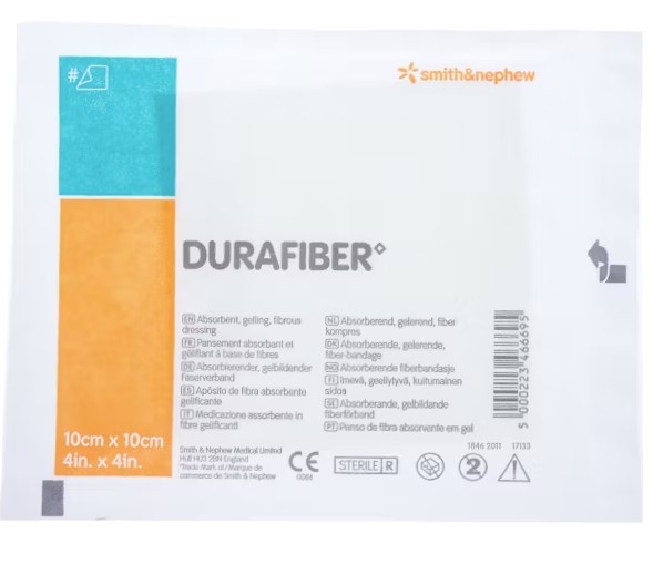 Durafiber to opatrunek włókninowo-żelowy o dużej chłonności, który w kontakcie z wysiękiem tworzy klarowny opatrunek żelowy. Łatwo dostosowuje się do kształtu rany. Powstały żel wchłania nadmiar płynów, gromadząc wysięk poza raną. Wskazany jako opatrunek żelowy w leczeniu ostrych i przewlekłych ran np.: odleżyny, owrzodzenia, rany chirurgiczne.