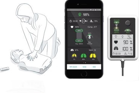 Monitorowanie uczestników: możliwość śledzenia do 6 uczestników za pomocą aplikacji QCPR Training app lub do 42 uczestników za pomocą QCPR Classroom.