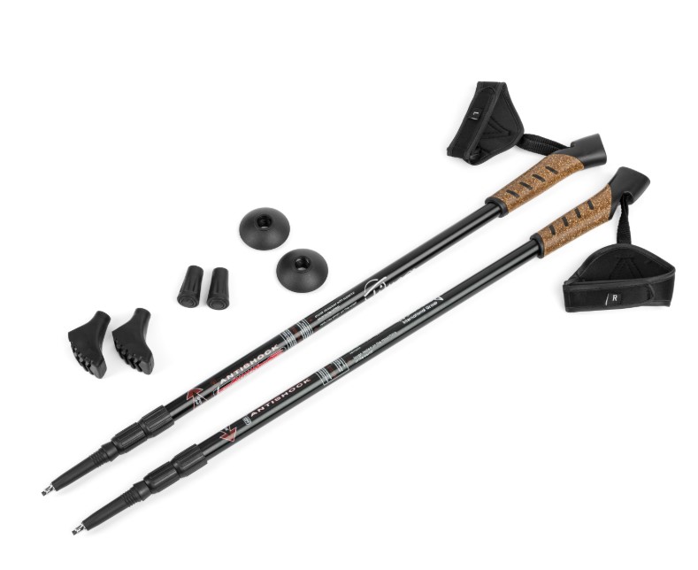 Kijki trekkingowe wykonane są ze specjalnie skomponowanych materiałów, które amortyzują wstrząsy spowodowane odbiciem od podłoża. Są lekkie oraz posiadają wymienne końcówki dostosowane do marszu po różnym podłożu. Kijki ułatwiają aktywność ruchową i poprawiają poczucie bezpieczeństwa.