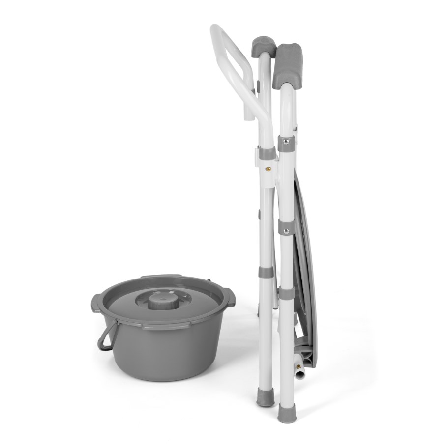 Krzesło toaletowe składane z szybkozłączkami jest sprzętem pomocniczym ułatwiającym użytkownikowi wykonanie czynności fizjologicznych. Zalecane jest dla osób, mających problemy z samodzielnym poruszaniem się, z dysfunkcjami i ograniczeniami ruchowymi oraz dla osób, które utraciły zdolność samodzielnego siadania i wstawania. Krzesło pełni funkcję toaletową dzięki wyposażeniu w pojemnik sanitarny pod siedziskiem. Ułatwia przeprowadzenie czynności fizjologicznych i pielęgnacyjnych użytkownika.