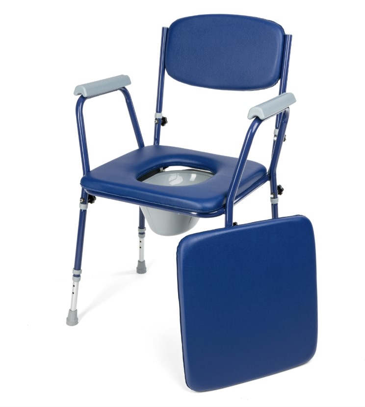 Krzesło toaletowe tapicerowane BLUE-TIM jest sprzętem pomocniczym ułatwiającym użytkownikowi wykonanie czynności higienicznych. Zalecane jest dla osób, mających problemy z samodzielnym poruszaniem się, z dysfunkcjami i ograniczeniami ruchowymi, oraz dla osób, które utraciły zdolność samodzielnego siadania i wstawania. Krzesło pełni funkcję toaletową dzięki wyposażeniu w pojemnik sanitarny pod siedziskiem. Ułatwia przeprowadzenie czynności fizjologicznych i pielęgnacyjnych użytkownika.