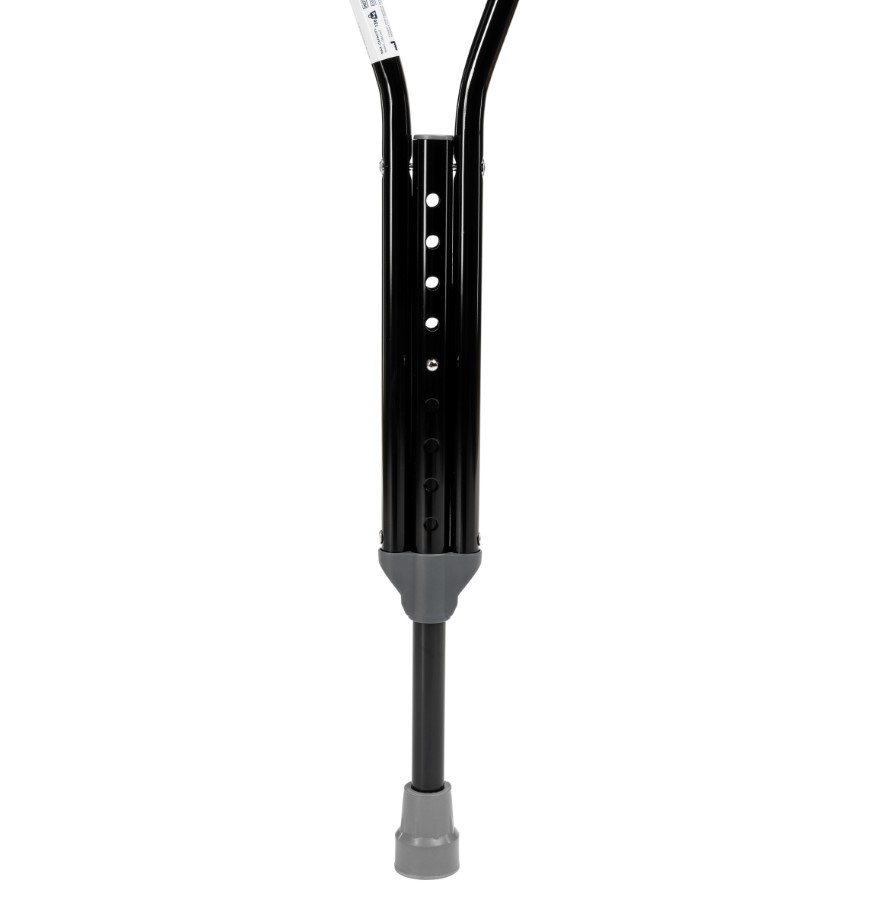 Wykonana jest z wytrzymałego, aluminiowego trzonu zakończonego gumową nasadką, miękkiego podparcia pod pachę oraz regulowanego uchwytu,
