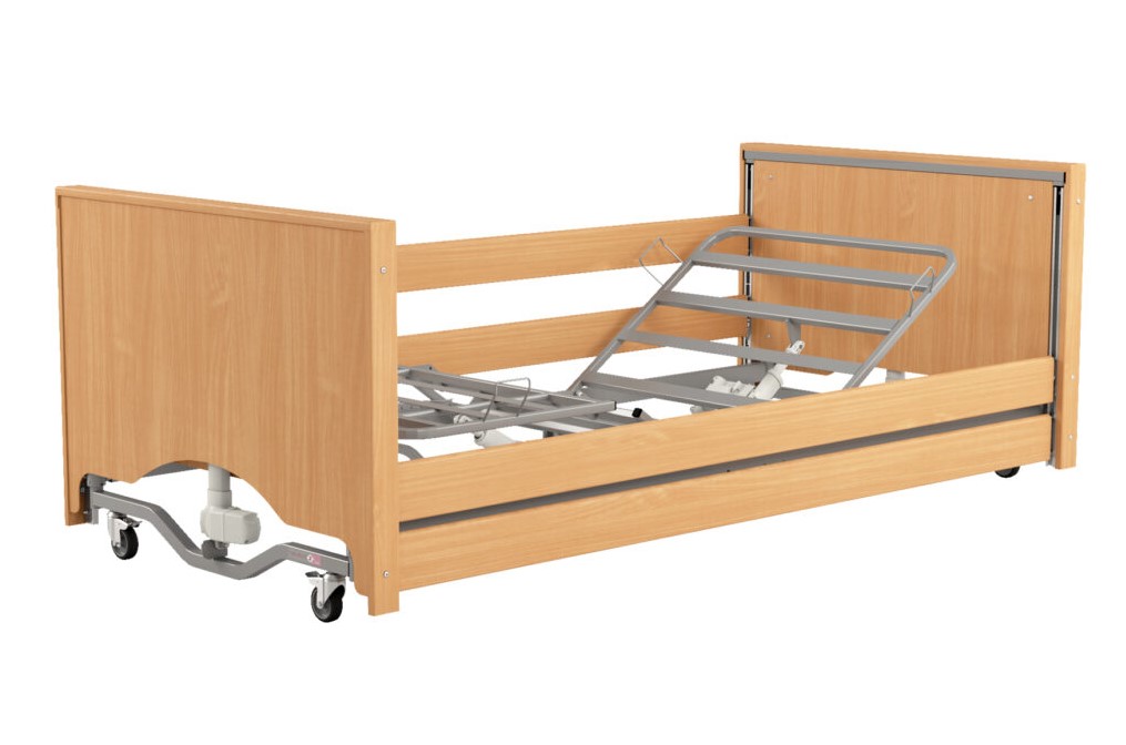 Tworząc model Taurus 2 LOW LUX wykorzystaliśmy najlepsze cechy modeli z serii Taurus oraz, kierując się potrzebami użytkowników, wprowadziliśmy szereg zmian wpływających na komfort i funkcjonalność łóżka. Główną różnicę stanowi konstrukcja, która w modelu Taurus 2 jest czterokolumnowa. Takie rozwiązanie pozwala na uzyskanie większej stabilności łóżka. Dodatkowo, w trosce o komfort użytkowania, obniżona została pozycja poręczy bocznych co znacząco ułatwia wstawanie i siadanie na łóżko. Wprowadzone zmiany pozwoliły na zmniejszenie długości łóżka – dzięki czemu jest ono kompaktowe i odpowiednie do zastosowania w pomieszczeniach o ograniczonej przestrzeni. Dodatkowo łóżko rehabilitacyjne Taurus 2 LOW LUX zostało zaprojektowane tak, aby zaoferować użytkownikowi możliwość ustawienia najniższej pozycji leża na wysokości 20cm and podłogą. Zastosowanie takiego rozwiązania w łóżku rehabilitacyjnym znacznie ułatwia opiekę i pielęgnację chorego ale także ułatwia użytkownikowi wstawanie. Zastosowaliśmy także dekoracyjne szczyty.