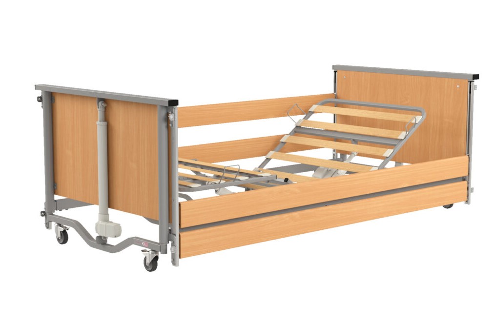 Tworząc model Taurus 2 LOW wykorzystaliśmy najlepsze cechy modeli z serii Taurus oraz, kierując się potrzebami użytkowników, wprowadziliśmy szereg zmian wpływających na komfort i funkcjonalność łóżka. Główną różnicę stanowi konstrukcja, która w modelu Taurus 2 jest czterokolumnowa. Takie rozwiązanie pozwala na uzyskanie większej stabilności łóżka. Dodatkowo, w trosce o komfort użytkowania, obniżona została pozycja poręczy bocznych co znacząco ułatwia wstawanie i siadanie na łóżko. Wprowadzone zmiany pozwoliły na zmniejszenie długości łóżka – dzięki czemu jest ono kompaktowe i odpowiednie do zastosowania w pomieszczeniach o ograniczonej przestrzeni. Dodatkow łóżko rehabilitacyjne Taurus 2 LOW zostało zaprojektowane tak, aby zaoferować użytkownikowi możliwość ustawienia najniższej pozycji leża na wysokości 20cm and podłogą. Zastosowanie takiego rozwiązania w łóżku rehabilitacyjnym znacznie ułatwia opiekę i pielęgnację chorego ale także ułatwia użytkownikowi wstawanie.