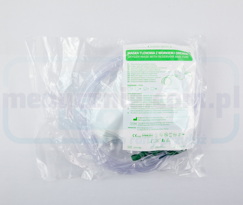 Maska tlenowa z drenem i workiem dla dorosłych – rozmiar (L)