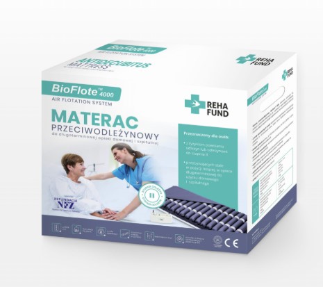 Bioflote 4000 to materac rurowy klasy premium stworzony do długoterminowej opieki nad pacjentami obłożnie chorymi. Dzięki zaawansowanemu systemowi zmiennociśnieniowemu, mikrowentylacji i możliwości dostosowania ciśnienia do masy ciała użytkownika zapewnia stabilne, bezpieczne i komfortowe podłoże wspierające profilaktykę oraz leczenie odleżyn.