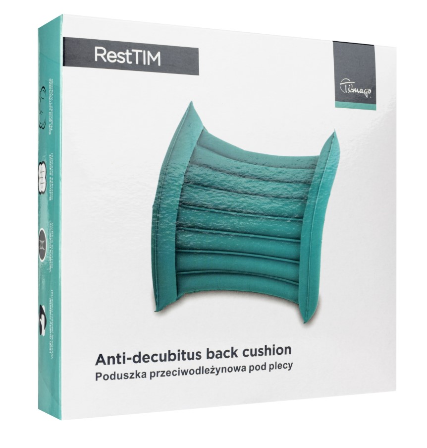 Poduszka przeciwodleżynowa pod plecy RestTIM należy do sprzętów pomocniczych przeznaczonych dla osób narażonych na ryzyko powstawania odleżyn. Stosowana jest u osób długotrwale przebywających w pozycji siedzącej, u których występują zaburzenia przepływu krwi w obwodowym układzie krwionośnym. Wykorzystywana jest w profilaktyce przeciwodleżynowej do I stopnia odleżyn(wg NPUAP / EPUAP).
