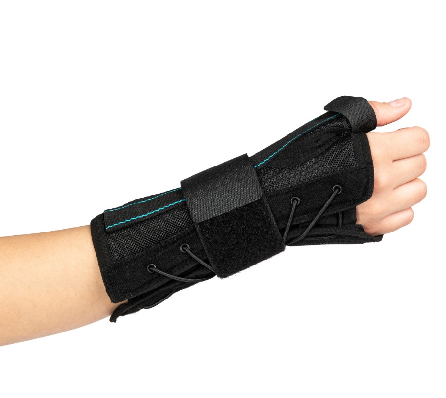 Stabilizator stawu nadgarstkowego z ujęciem kciuka stosowany jest w celu unieruchomienia nadgarstka w pozycji anatomicznej. Pozwala na pełny ruch w stawach śródręczno-paliczkowych i między-paliczkowych. Zmniejsza obciążenie kości nadgarstka, torebki stawowej oraz ścięgien. Wykonany jest z przewiewnego materiału z perforacją oraz lekkiej, aluminiowej szyny wzmacniającej i stabilizującej staw nadgarstkowy od strony dłoniowej. Wykorzystanie obwodowej taśmy dociągowej zapewnia ścisłe przyleganie stabilizatora oraz pewne unieruchomienie.