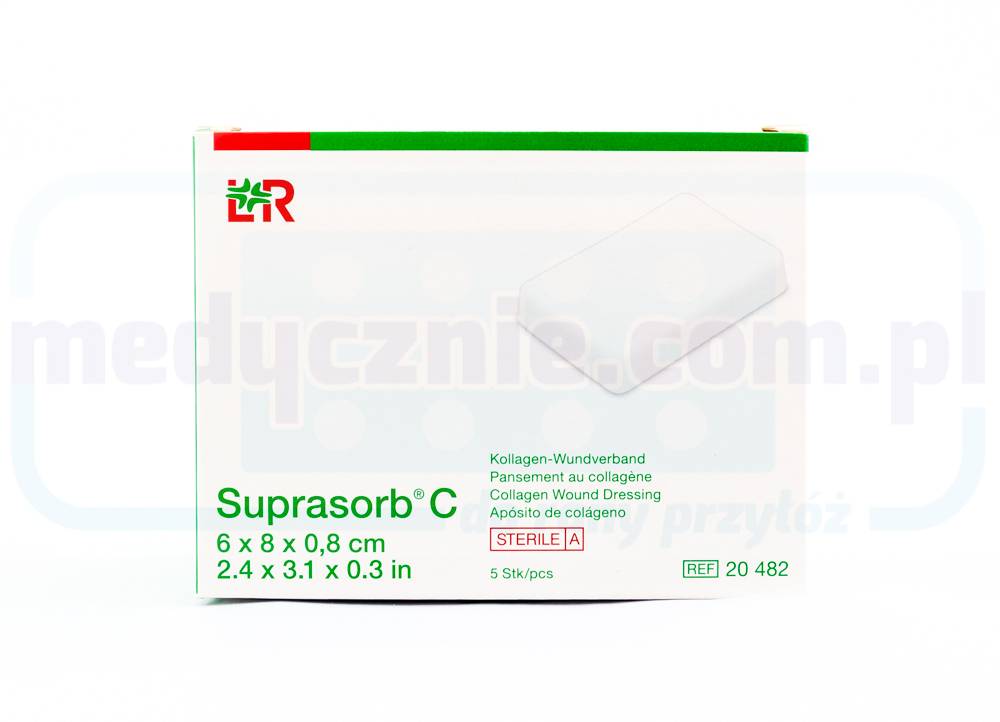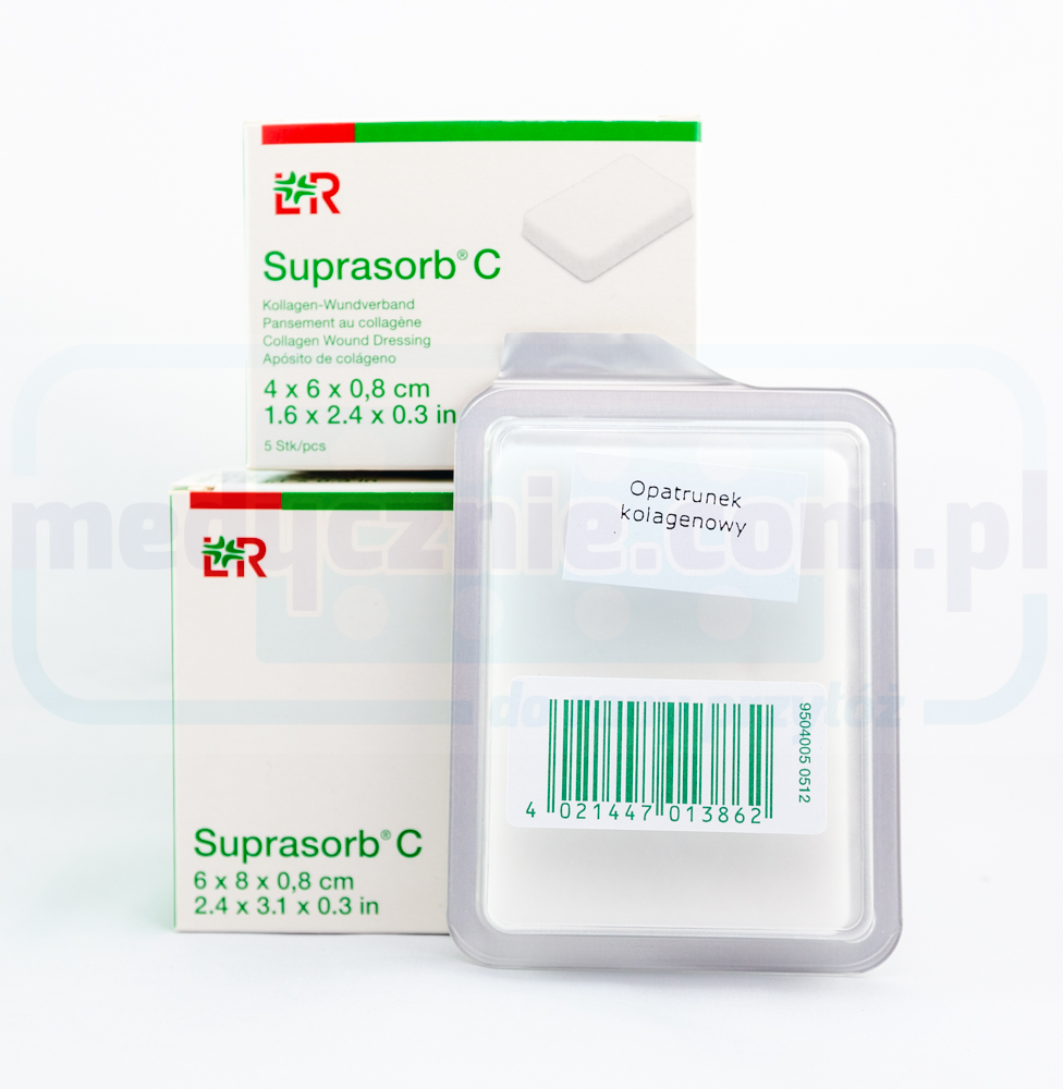 Opatrunek kolagenowy Suprasorb C posiada porowatą strukturę z bardzo wyraźnym zjawiskiem kapilarnym, a tym samym zdolność do wchłaniania płynów. Dzięki tej właściwości fizycznej, tkanki martwicze (takie jak odrzucone nekrozy, naloty włóknika) oraz proteazy i cytokiny indukujące zapalenie ulegają wiązaniu w procesie ciągłego wchłaniania wysięku. Proces ten sprzyja tworzeniu tkanki ziarninowej i przyspiesza je. Produkt skłania fibroblasty do migracji do rany i pobudza syntezę kolagenu. Ciągłe zaopatrzenie ubytku w wysokojakościowy kolagen podczas fazy ziarninowania i na początku fazy epitelizacji wspomaga regenerację własnych fibryl i włókien kolagenowych. Odbudowa łożyska rany wspomaga konieczną proliferację i migrację komórek naskórka. Ten proces wspomaga gojenie się ran. *