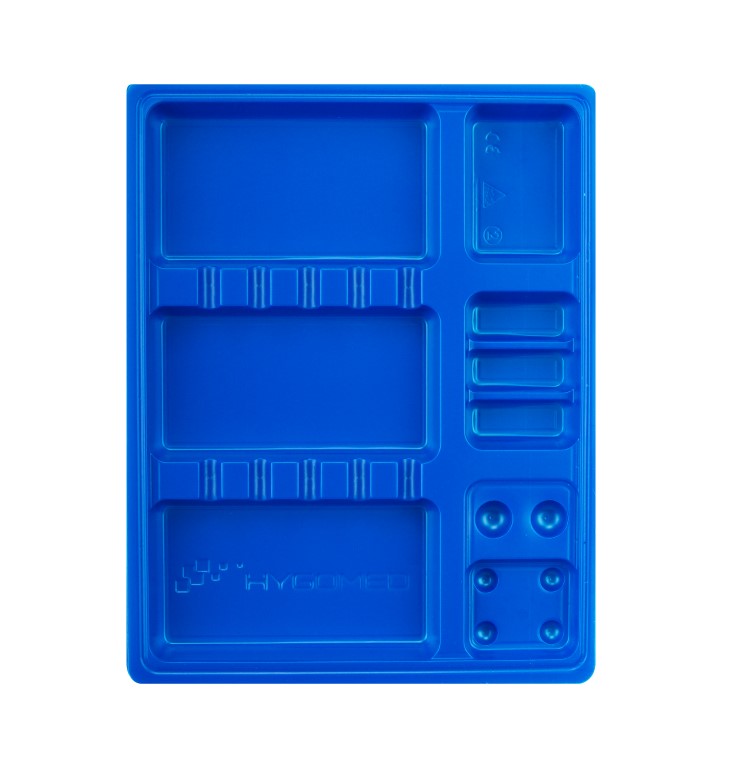 Stabilny i praktyczny box ułatwiający organizację pracy. Tacki stomatologiczne wykonane są z wysokiej jakości polistyrenu. Posiadają wygodne przegródki i profilowania na narzędzia, takie jak wiertła czy aplikatory oraz wgłębienia na płyny, wypełniania i inne materiały.