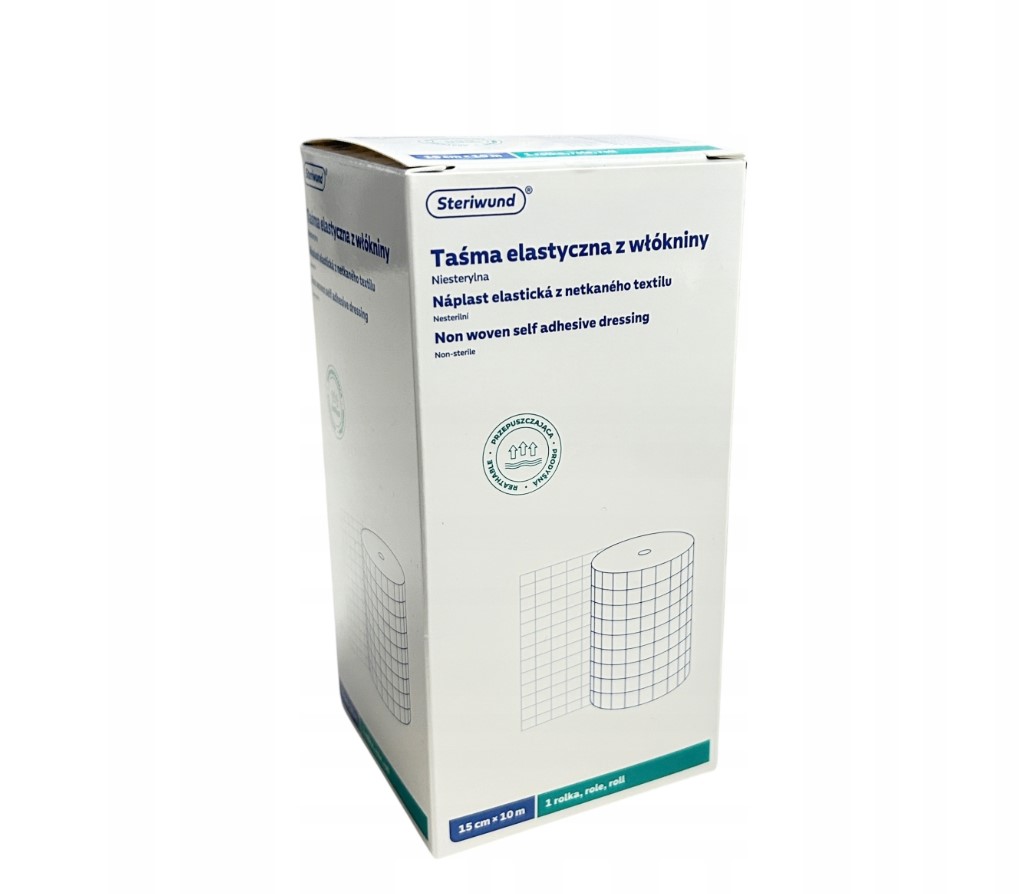 Taśma dzięki zastosowaniu mikroporowatej struktury włókniny jest opatrunkiem oddychającym.